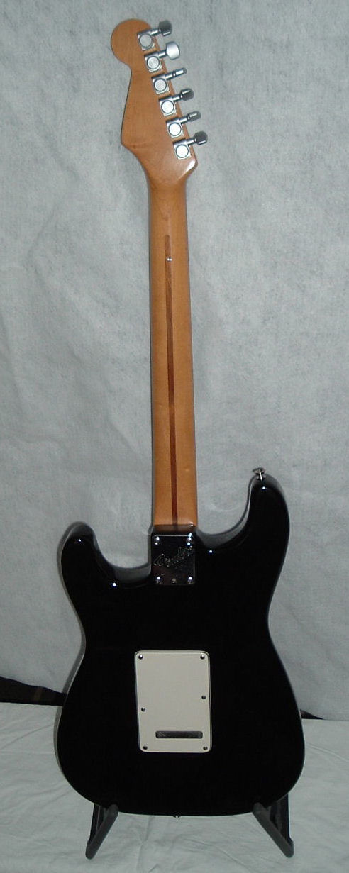 - black body,rosewood fretboard, gold lace sensor pickups, Schaller locking tuners, TBX powerboost knob. and Hipshot trem setter. All original.